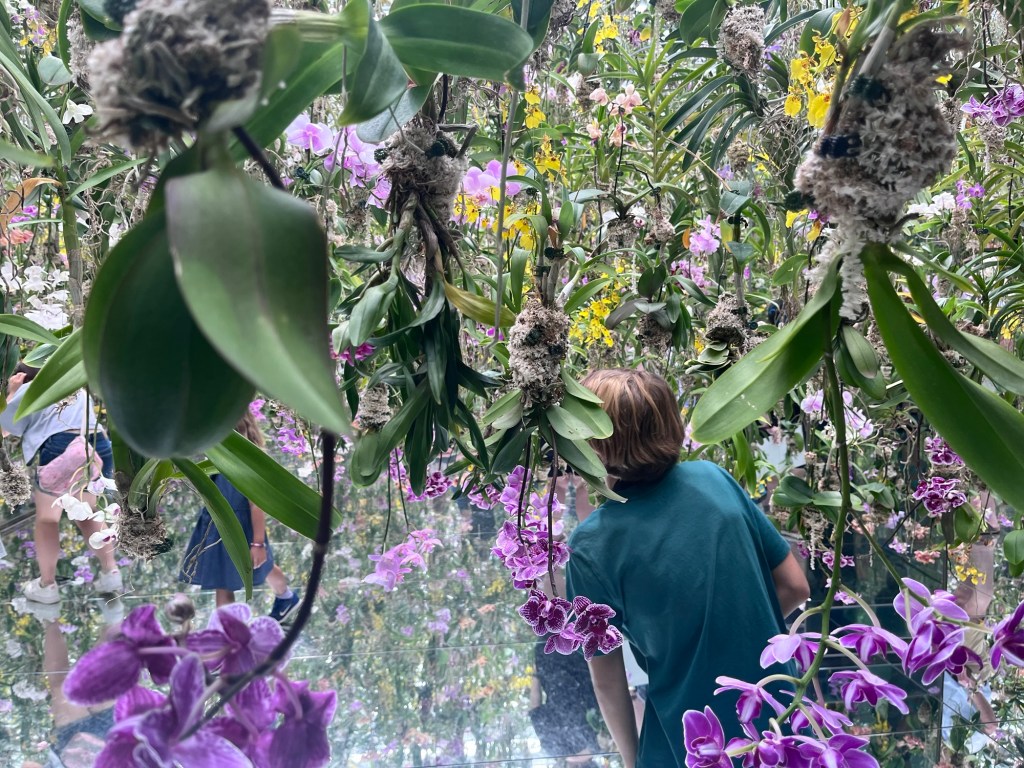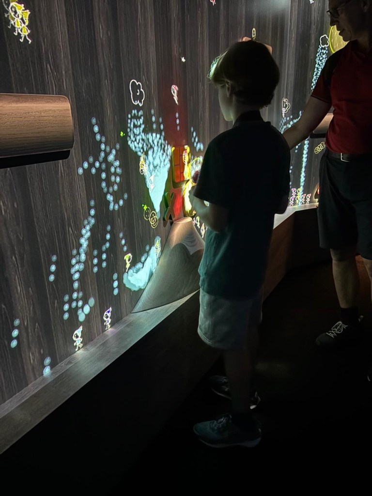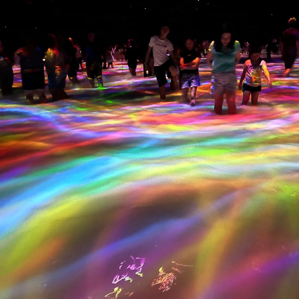 Heute waren wir im Team Labs. Wir haben ganz viele coole Dinge gemacht. Es gab Ausstellungen zu Wasser, Wald und Garten. Im Wasser gab es viele Lichter und wir sind Barfuss rumgelaufen. In einem anderen Raum sind Orchideen von der Decke gewachsen.